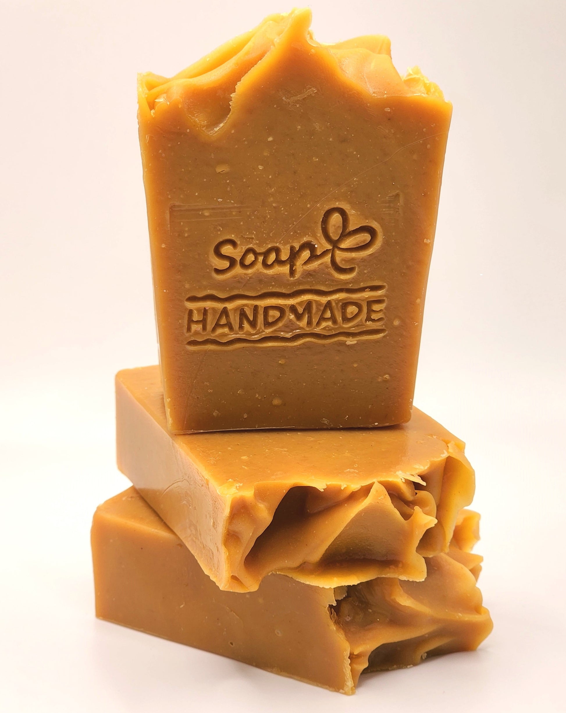 Olive Oil, Coconut Oil, Palm Oil, Castor Oil, Cocoa Butter, Shea Butter, Water, Sodium Hydroxide, Coconut Milk, Honey, Sodium Lactate, Tussah Silk, Fragrance Oil & Ground Turmeric Root Powder